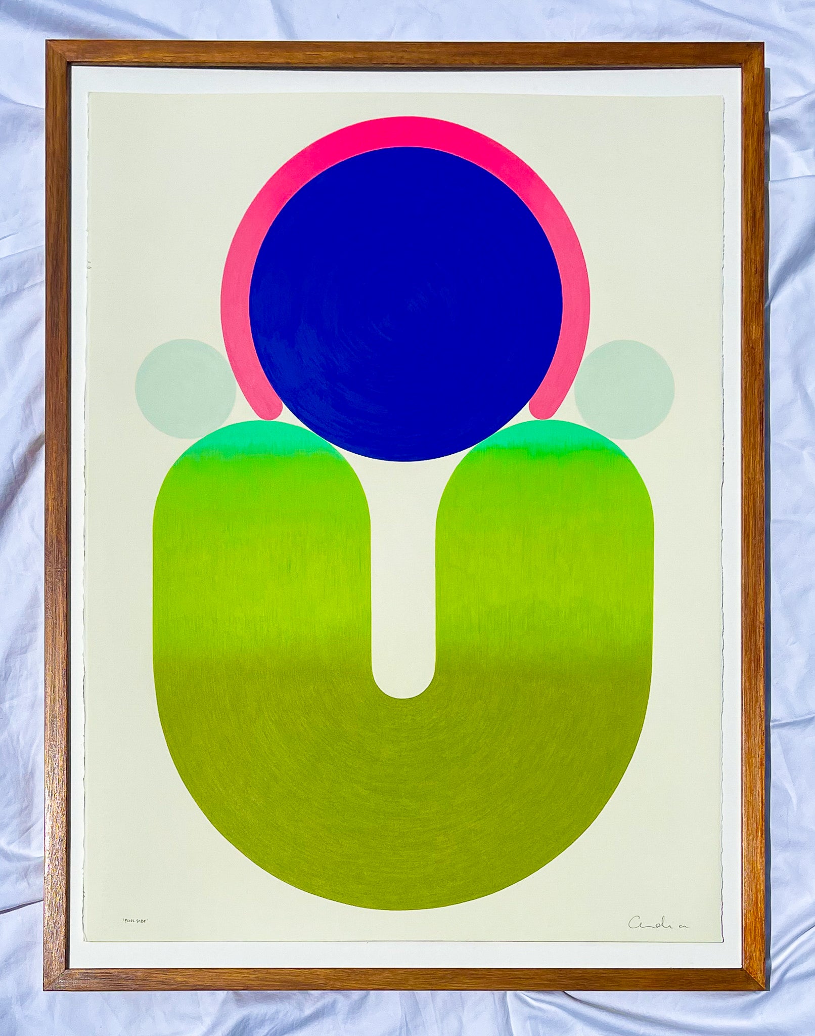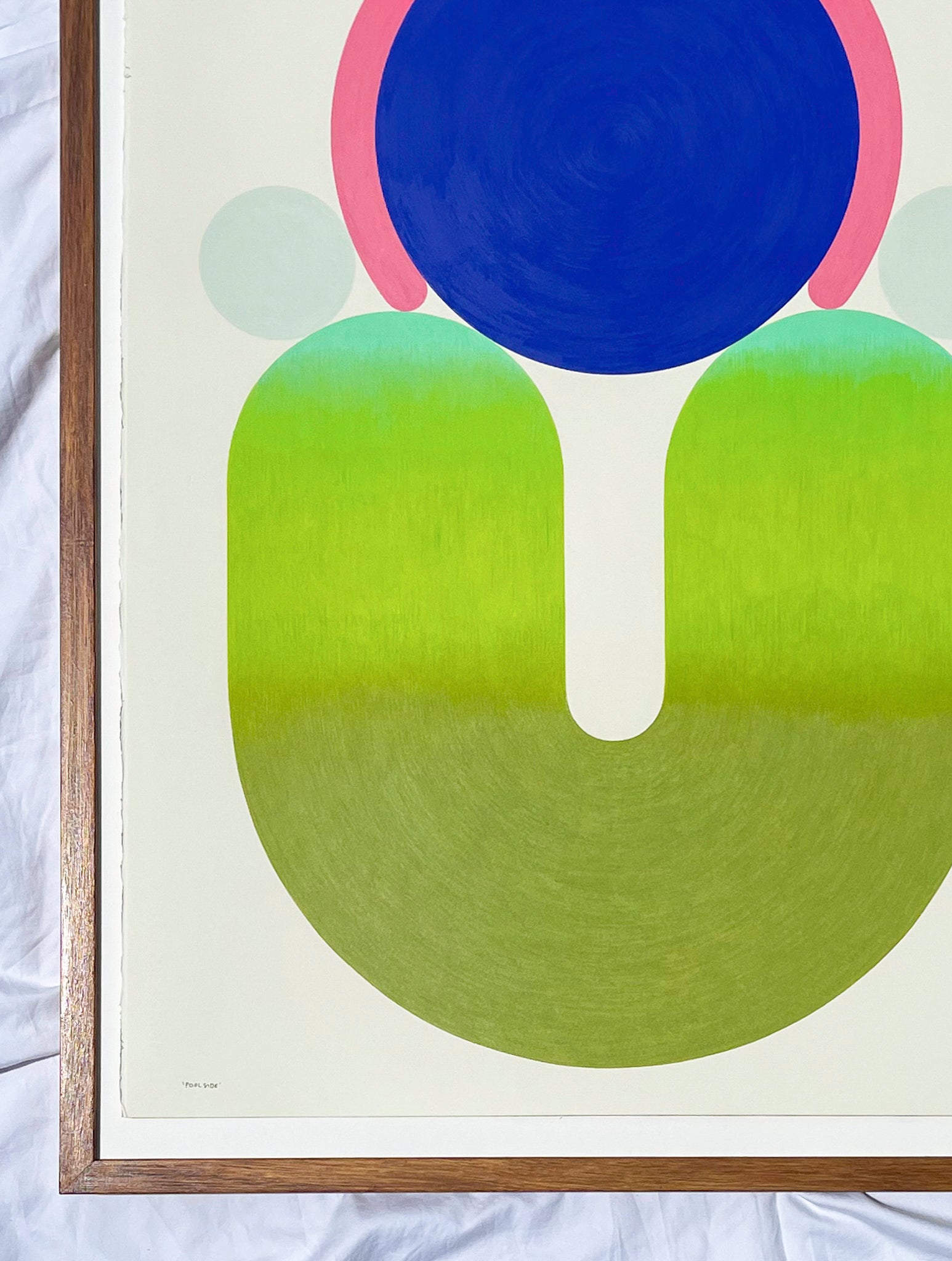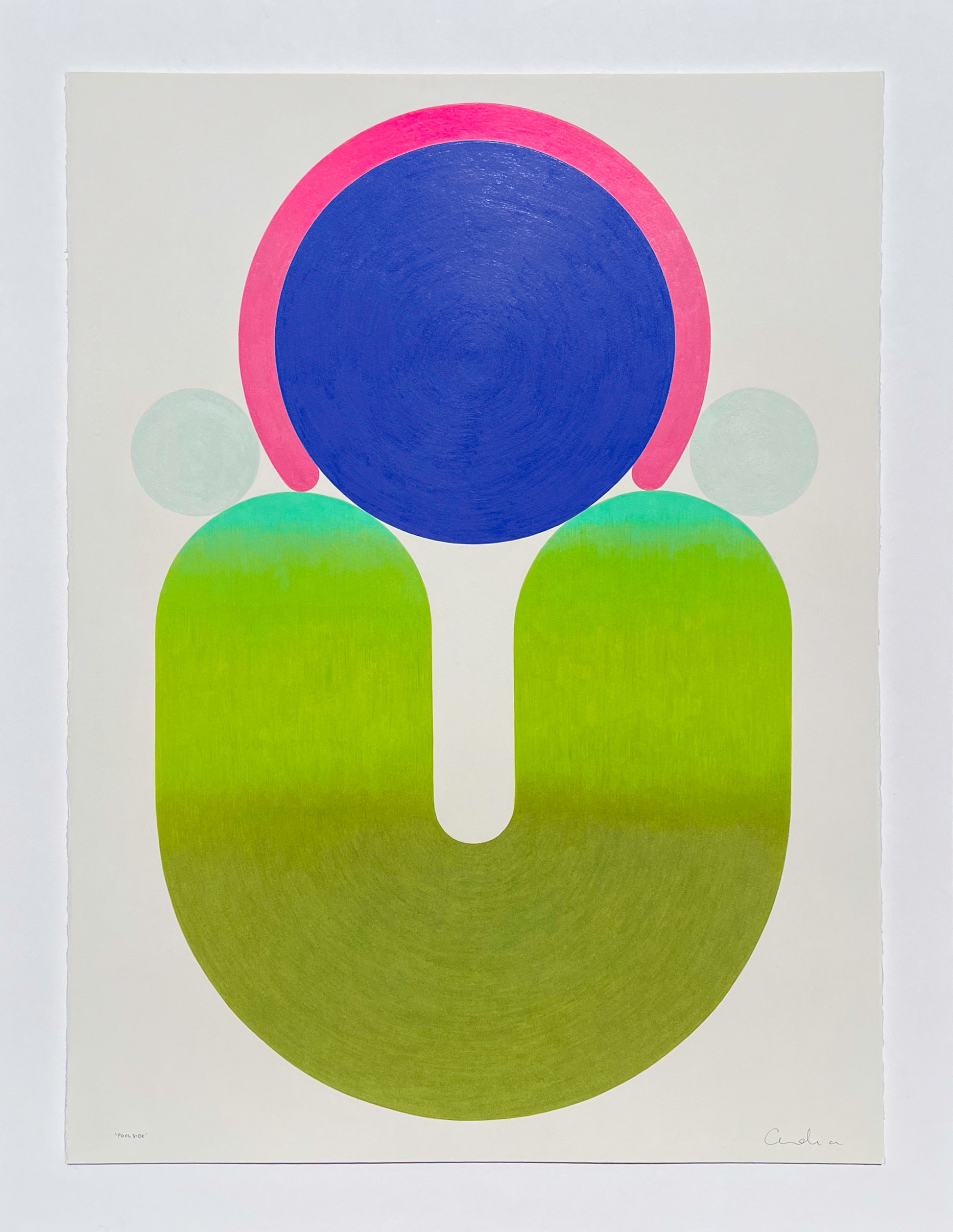 Calm yet vivid, Poolside hums with quiet energy like a slow exhale of colour and form that invites the viewer to linger a little longer poolside.